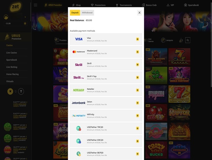 The casino provides a range of deposit and withdrawal options, catering to both traditional and crypto-savvy players alike. While credit cards and cryptocurrencies feature prominently, MoneyGram, listed for withdrawals, may not be readily available for all users, as confirmed by customer service. For reliable withdrawals, Bitcoin and credit cards stand as the confirmed methods.